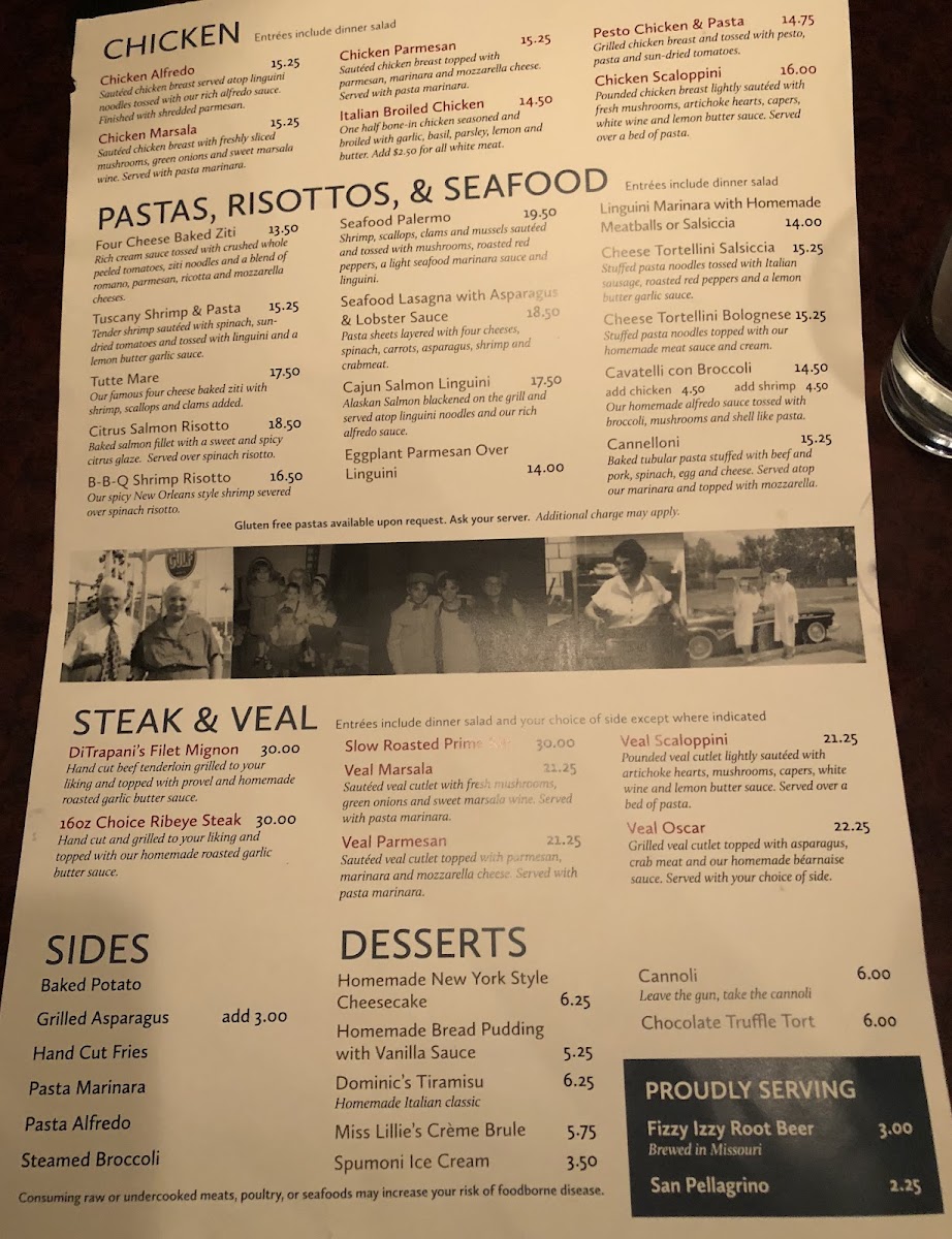 Steak and veal lovers will enjoy indulgent options like Ditrapani's Filet Mignon and the juicy 16oz Choice Ribeye Steak, while the Veal Marsala and Veal Parmesan offer tender and flavorful alternatives.